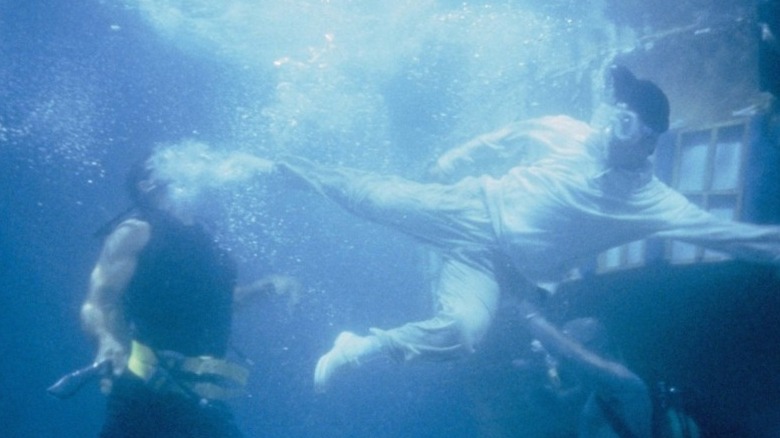 Chan's trademark fight genius remains on full display throughout. From the early snowbound brawls to an underwater fight interrupted by a hungry (and laughable) shark, the film delivers plenty we haven't seen from Chan before. The highlight has him interrupt a memorial hoping only to talk, but the targets don't listen and attack instead, leading to a terrific fight in which Chan makes brilliant use of a ladder. As with "Supercop," "Police Story IV" does away with the seriousness of the first two franchise entries, resulting in stress-free entertainment.