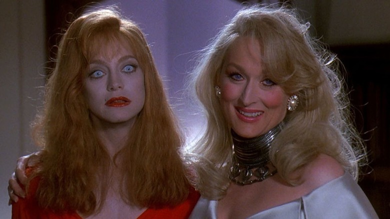 "Death Becomes Her" stars Meryl Streep as actress Madeleine and Goldie Hawn as writer Helen. The two women are bitter rivals who both end up fighting for the attention of Helen's husband, plastic surgeon Ernest Menville (Bruce Willis). Their rivalry eventually leads them to both drink a magic potion that promises eternal life and beauty, even in the event of "death".