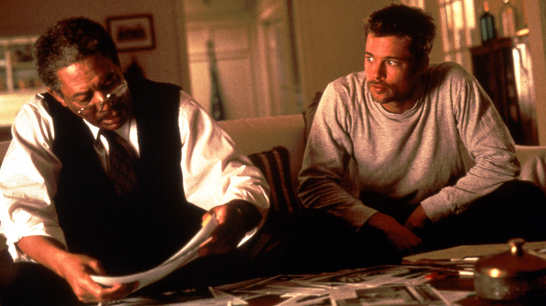 "Se7en" follows two detectives, a rookie named Mills (Brad Pitt) and Somerset (Morgan Freeman), a veteran cop, as they hunt a serial killer known as John Doe (Kevin Spacey). A true psychopath, Doe twists the seven deadly sins of greed, lust, gluttony, pride, wrath, envy, and sloth into the basis for heinous murders.