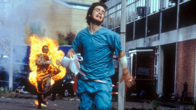 In "28 Days Later," and the sequel "28 Weeks Later," most people become infected and/or die almost immediately. If the coronavirus pandemic proved anything, it's that it's very, very hard to not catch highly contagious viruses — and that's without angry people trying to vomit their infectious blood all over you. Forget week-long quarantines — the few who did survive the initial outbreak in "28 Days Later" can't really leave their homes ever without risking their lives. The protagonist and other survivors initially avoided the virus by dumb luck, but that good fortune has run out. And if that's not bad enough, those in the outbreak area also have to contend with trigger-happy military all too ready to put a bullet in anyone's head. Forget mask mandates and social distancing; this is a world where simply stepping outside can be fatal.
